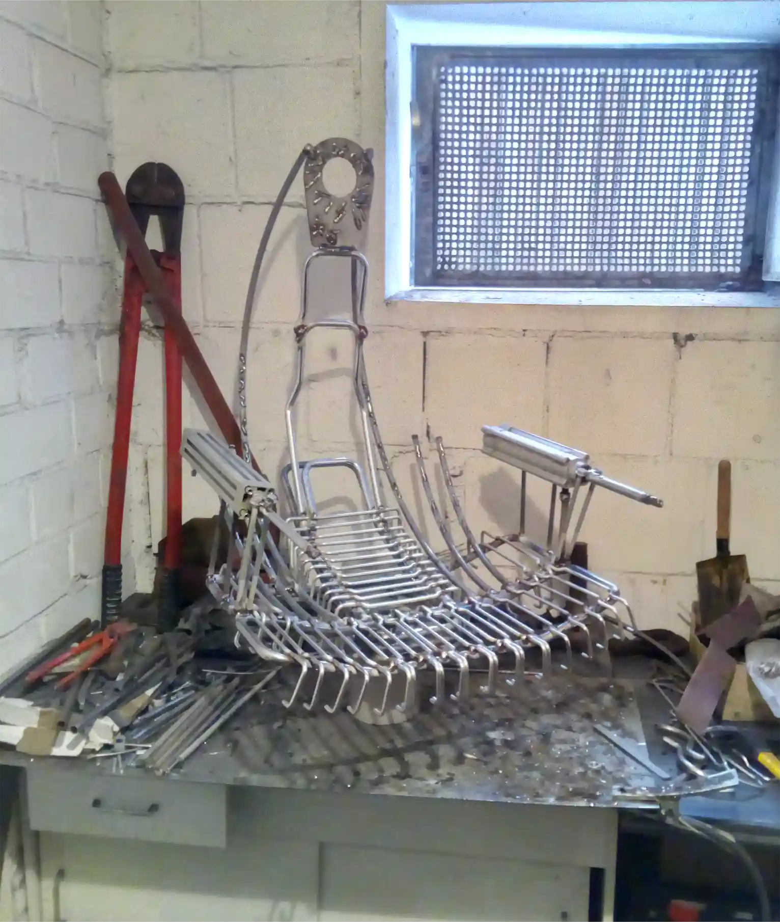 The Chair of Horror is a striking metal art piece that merges industrial aesthetics with an eerie, dystopian feel. Designed in 2018, this handcrafted structure embodies a sense of mystery and intensity, inviting viewers to interpret its symbolism. With intricate metalwork, mechanical elements, and a bold design, it serves as both a sculptural statement and a conversation piece.